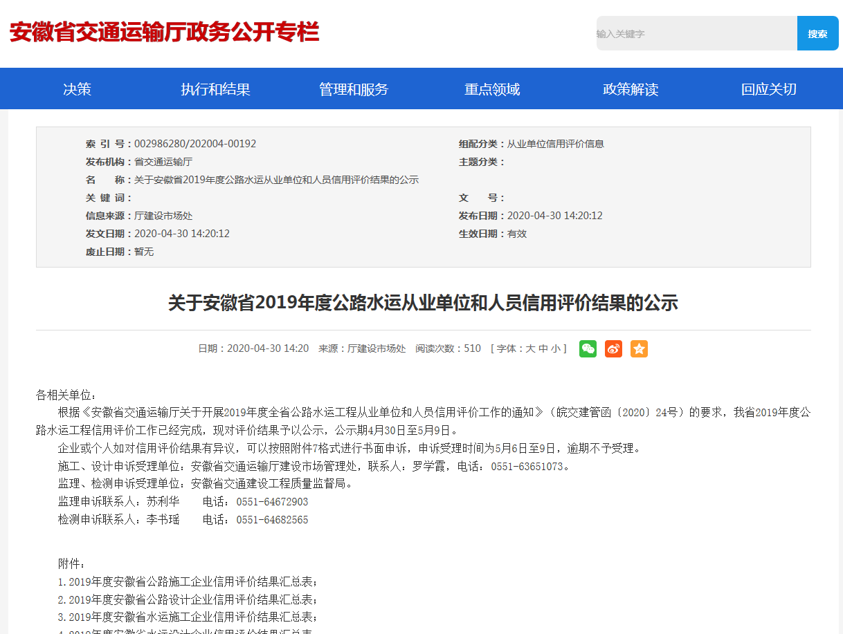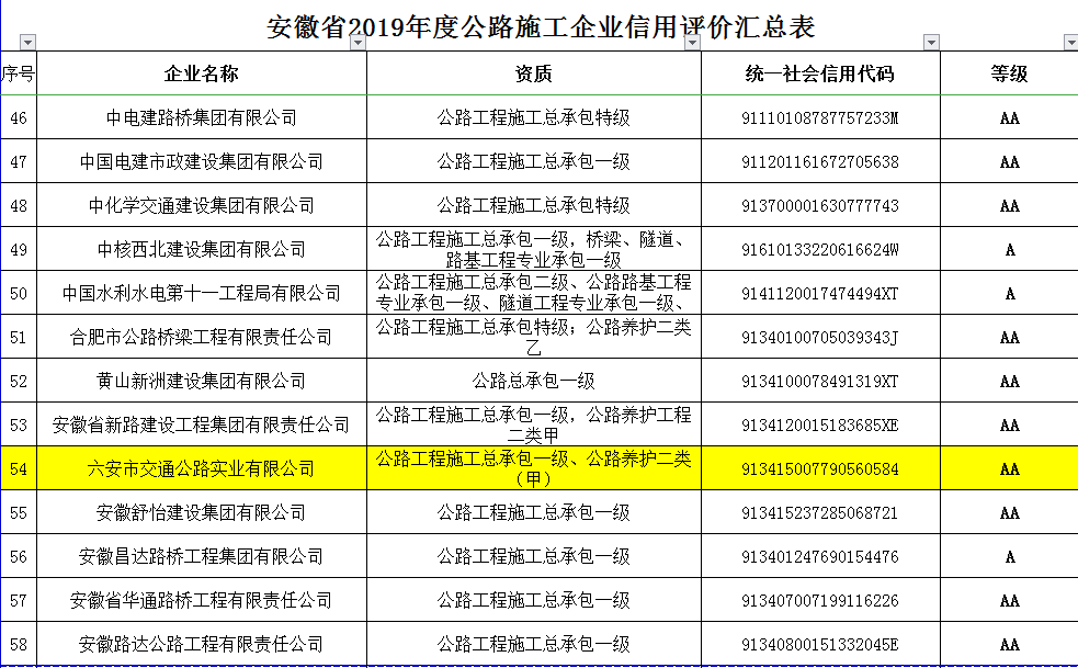 2019年企業(yè)信譽(yù)等級(jí)證明材料安徽省交通運(yùn)輸廳AA級(jí)信譽(yù)等級(jí)查詢網(wǎng)址: