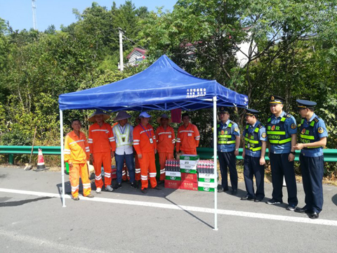 安徽省交通控股集團(tuán)養(yǎng)護(hù)管理中心鮑副主任攜綜合部安全部、安徽省交通控股集團(tuán)養(yǎng)護(hù)管理中心六安分中心和安徽省中興工程監(jiān)理有限公司領(lǐng)導(dǎo)慰問六武高速公路上行線k608銑刨作業(yè)現(xiàn)場施工人員