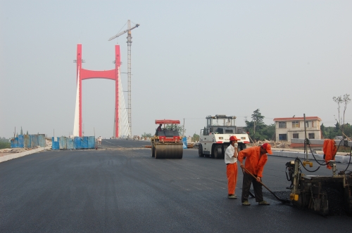 公司參加市政重點工程淠望路大橋橋面瀝青混凝土工程